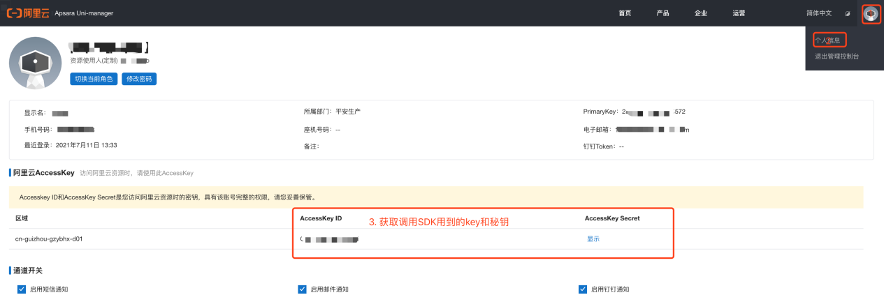 - 2.按照如下步骤获取对应的授权账号 key和秘钥