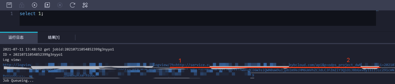* 运行SQL ,把查询结果保存成临时表,方便后续用Tunnel下载。